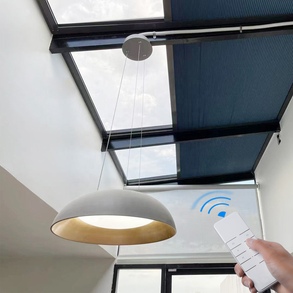 Rèm trần phẳng tự động phù hợp để che nắng giếng trời, che nắng trần nhà bằng kính, mái hiên có kính.