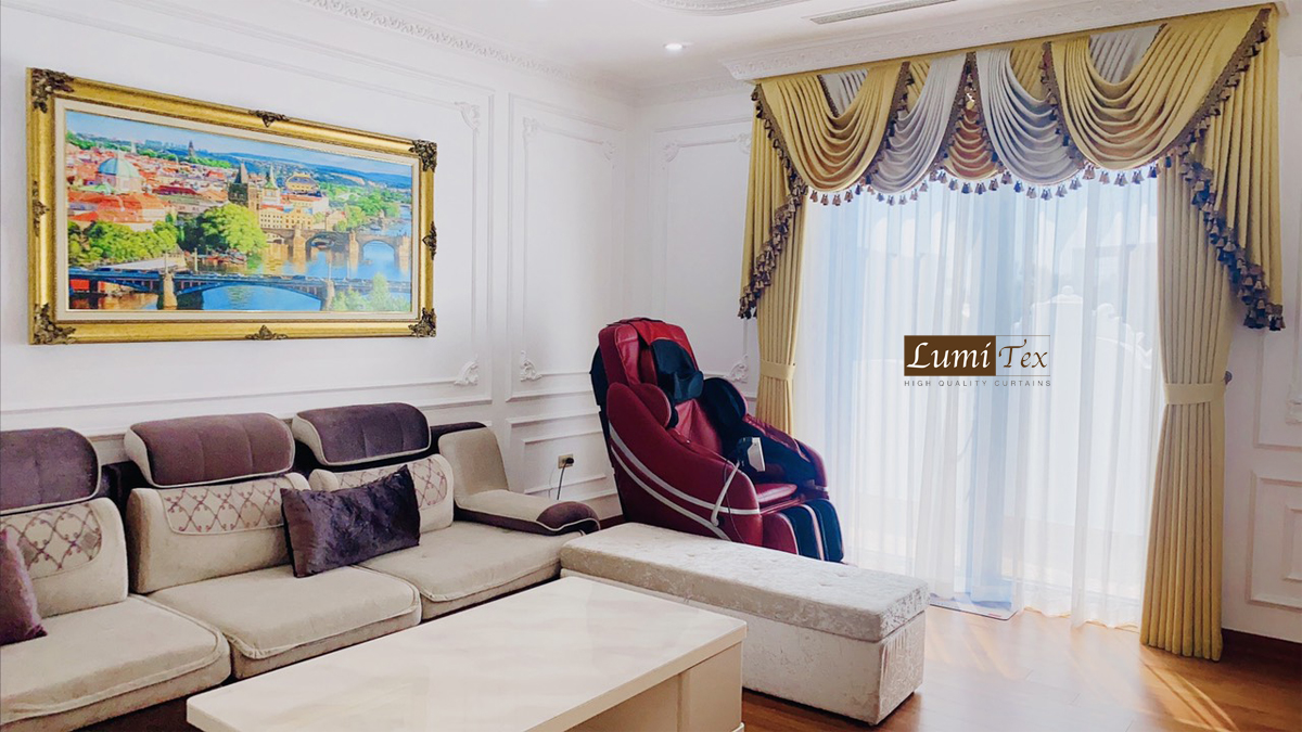 Sau khi tiếp nhận nhu cầu của gia chủ, Lumitex đã tư vấn cho gia chủ sử dụng rèm vải hoạ tiết, voan trắng với động cơ thông minh, rèm cuốn combi thương hiệu Modero lắp đặt cho căn biệt thự. Các thiết kế tương tự mẫu rèm vải hạo tiết cổ điển, tân cổ điển một màu thường được sử dụng cho các không gian của biệt thự, hay spa sang chảnh, những nơi thước đo về sự chuẩn mực luôn được đặt lên hàng đầu. Ngày nay, trên thị trường mành cửa có đa dạng các thiết kế về kiểu dáng, mẫu mã cũng như màu sắc của màn cửa tân cổ điển giúp người sử dụng có lựa chọn phù hợp nhất với nhu cầu của gia đình mình. Rèm cửa tân cổ điển sẽ kết hợp với nội thất và cách bố trí trong không gian giúp căn phòng của bạn thêm ấn tượng hơn bao giờ hết.