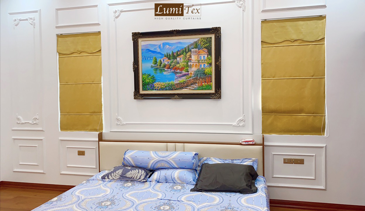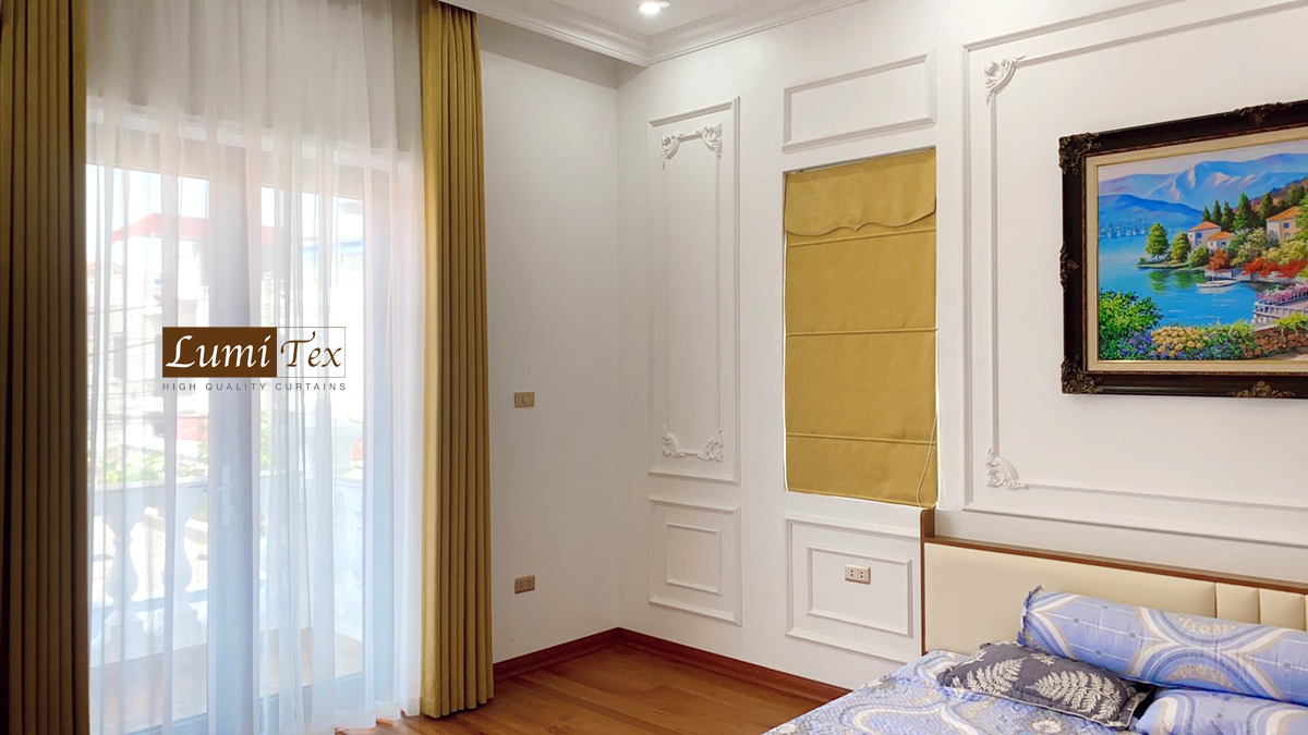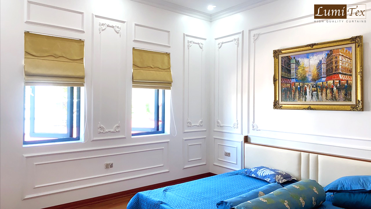 Rèm roman tone vàng khiến không gian tươi mới hơn, giúp gia chủ thư giãn