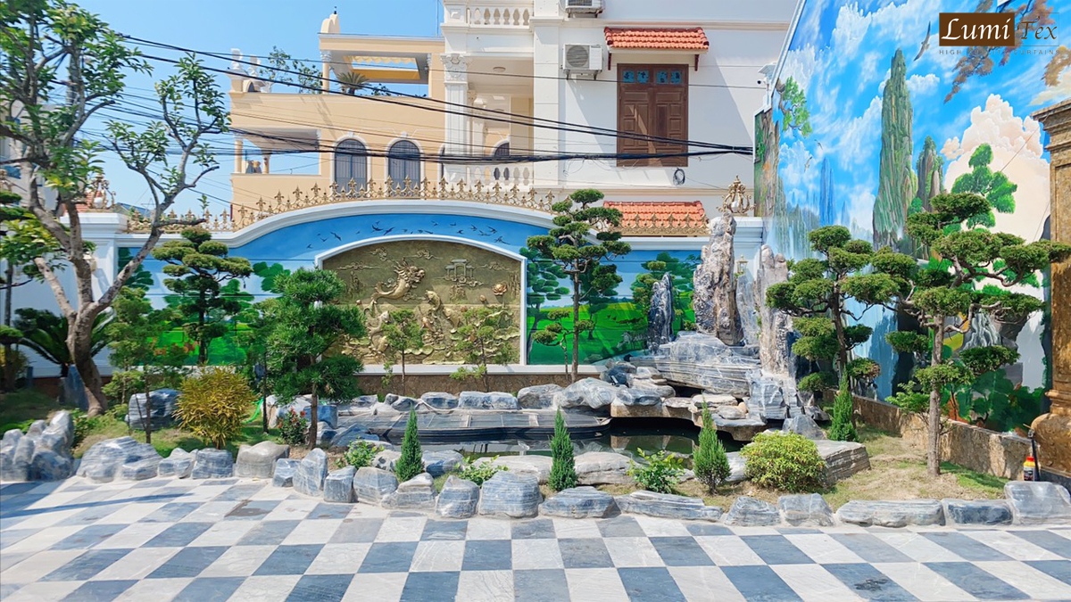 Khu vực tiểu cảnh của căn biệt tự cũng vô cùng ấn tượng