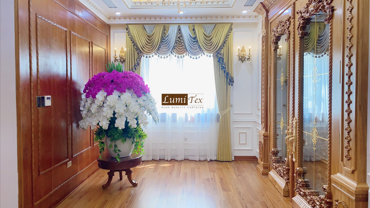 Là một trong những công trình tiêu biểu của Lumitex thi công trong thời gian gần đây. Công trình lắp đặt rèm vải cao cấp cho biệt thự tại Hải An, Hải Phòng - chủ đầu tư anh Trọng nhận được đánh giá cao và nhiều lời khen ngợi từ phía chủ đầu tư. Trong bài viết dưới đây, Lumitex sẽ giới thiệu tới quý khách hàng mẫu rèm vải họa tiết tân cổ điển cao cấp kết hợp voan trắng & rèm cuốn combi thương hiệu Modero được lắp đặt cho hệ thống rèm cửa nhà anh Trọng.
