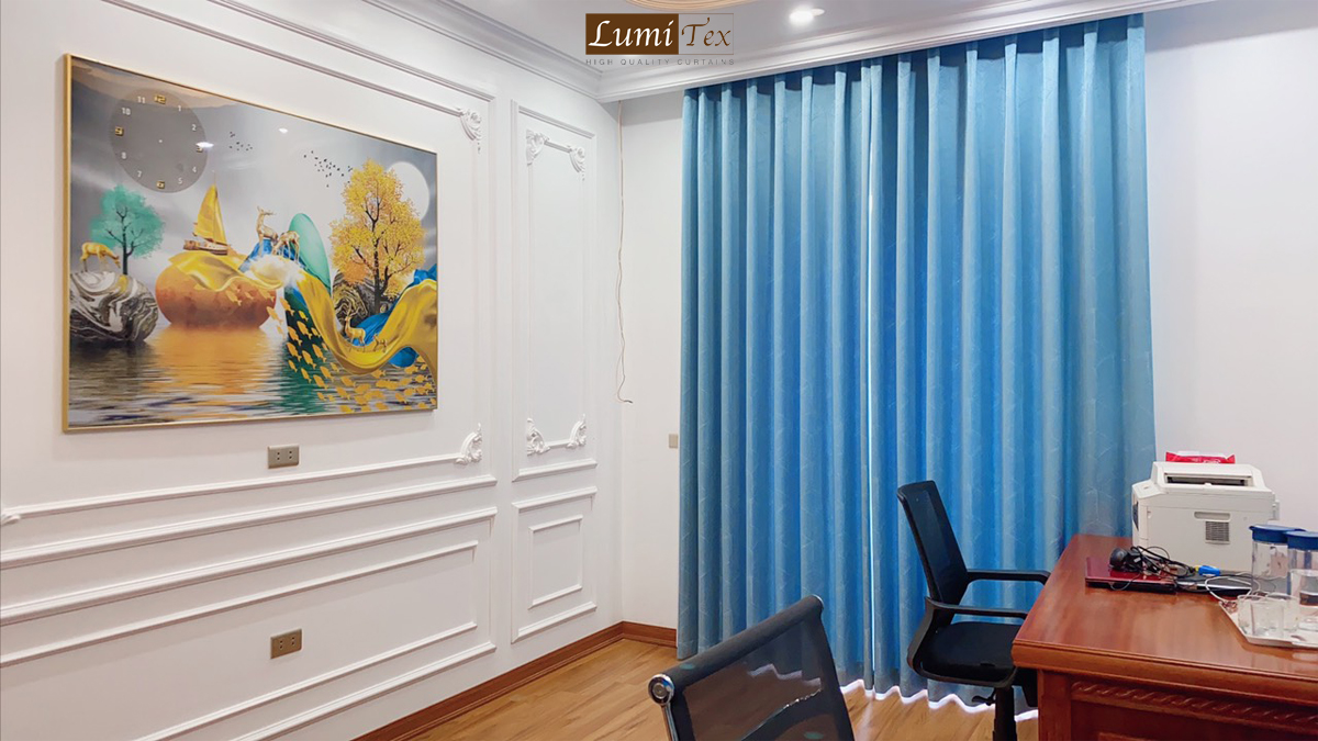 Rèm vải cao cấp Lumitex lắp đặt cho khu vực phòng làm việc của gia chủ