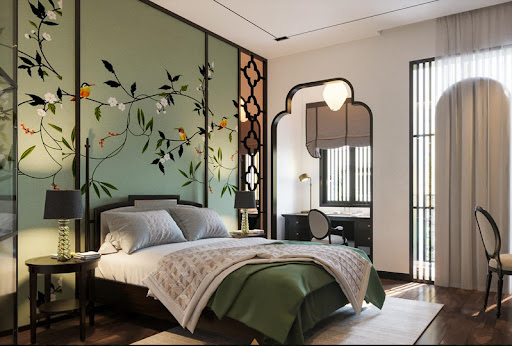 Để không gian các phòng trong phong cách Indochine phát huy được hết vẻ đẹp thì gia chủ không nên lựa chọn quá nhiều đồ nội thất để trang trí sẽ gây tác dụng ngược. Một bộ rèm cửa nhẹ nhàng tinh tế chính là " điểm nhấn " ấn tượng và thu hút sự tập trung của người nhìn.