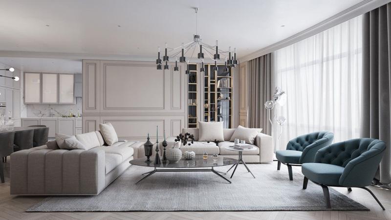 Rèm cửa lắp đặt cho biệt thự tân cổ điển thường trang nhã, sang trọng về màu sắc